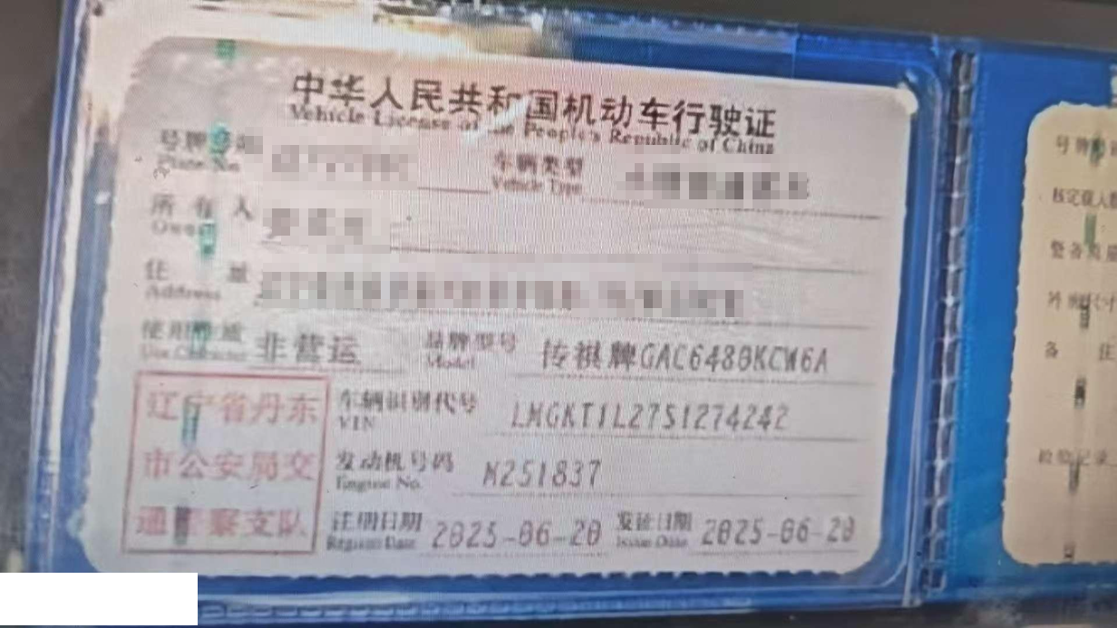 初次登记日期 2025-06-20 车辆名称 广汽传祺 传祺M6