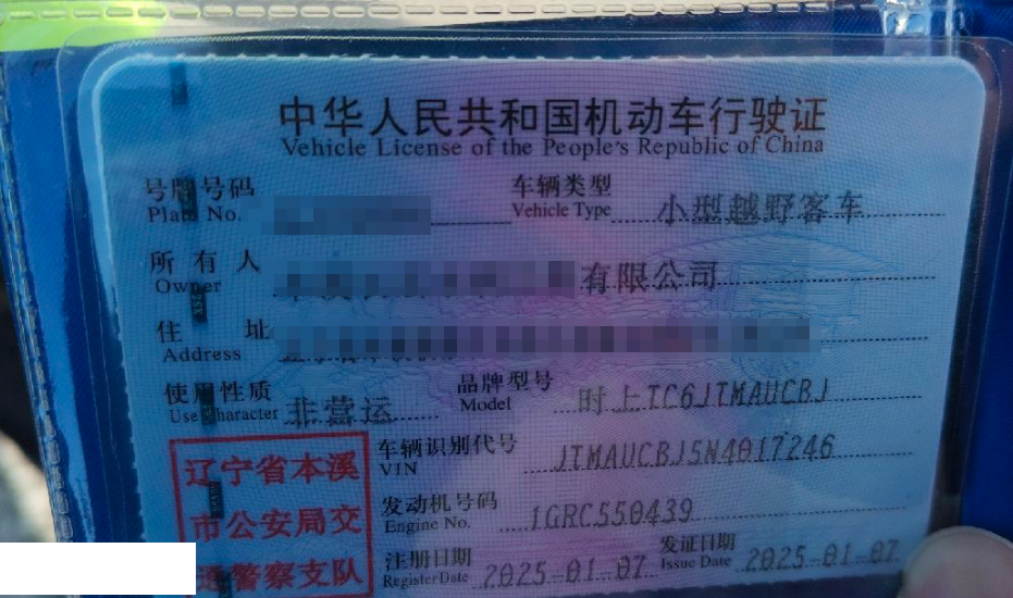 车辆归属地 辽宁本溪 车辆停放仓库 沈阳