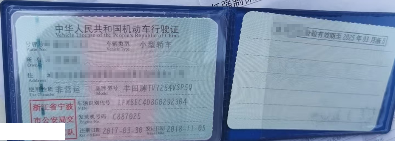 车牌号 浙****** 品牌 丰田