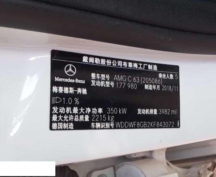 初次登记日期 2019-06-28 车辆名称 奔驰C级AMG