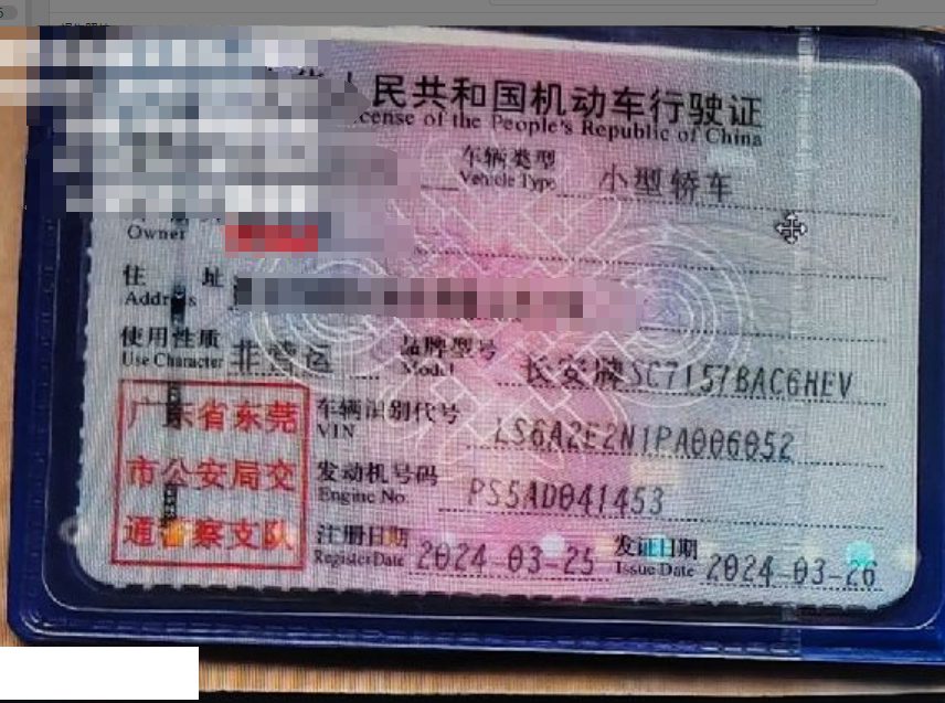 车辆归属地 广东省东莞 车辆停放仓库 广东省东莞