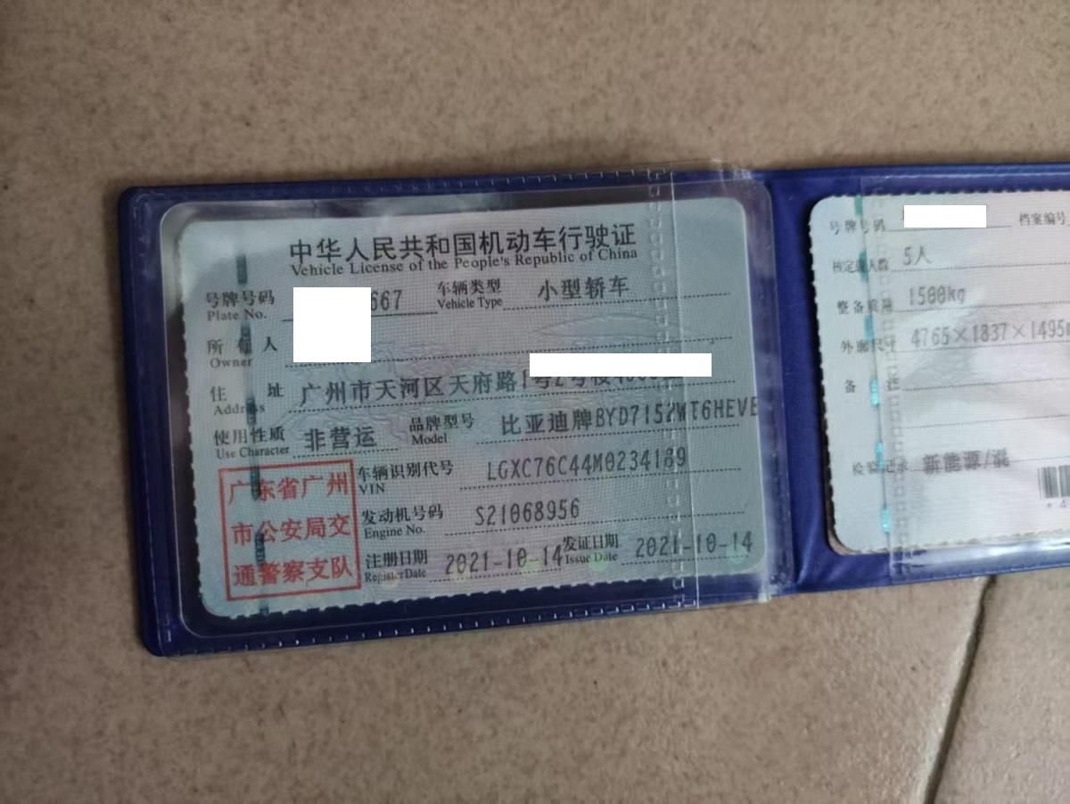车牌号 粤****** 品牌 比亚迪