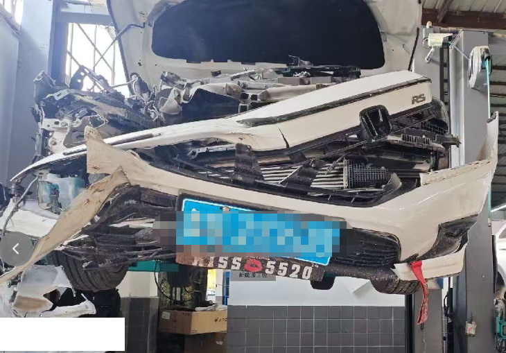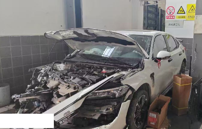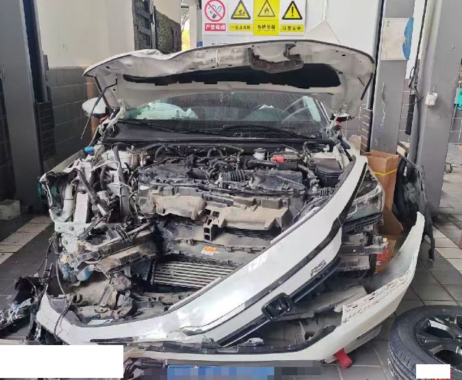 根据所给照片,自行判断钢印号是否受损 本车前部受损严重,气囊全都爆炸,底盘件受损