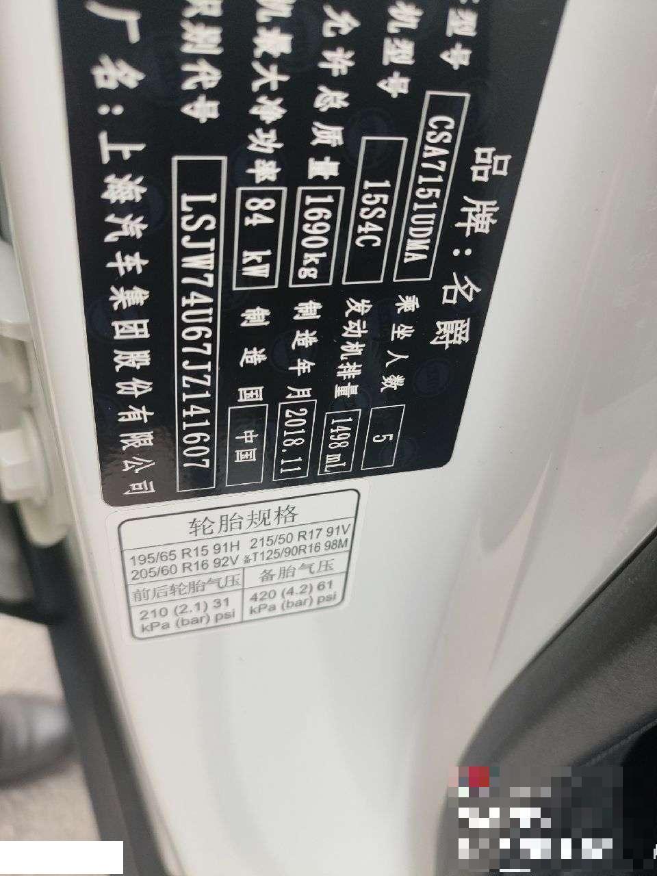 车牌号 浙****** 品牌 名爵
