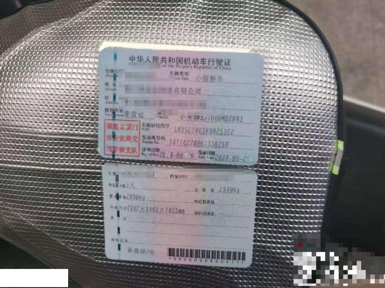 初次登记日期 2024-06-26 车辆名称 小米汽车 小米