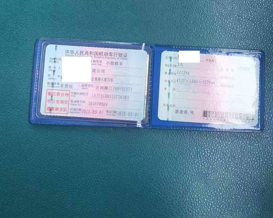 初次登记日期 2025-09-01 车辆名称 吉利银河 星愿