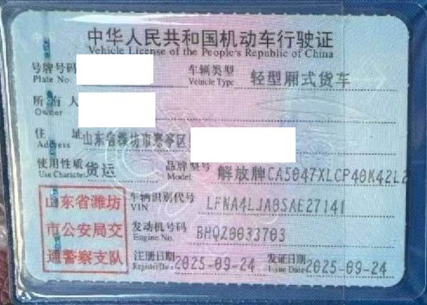 初次登记日期 2025-09-24 车辆名称 解放牌