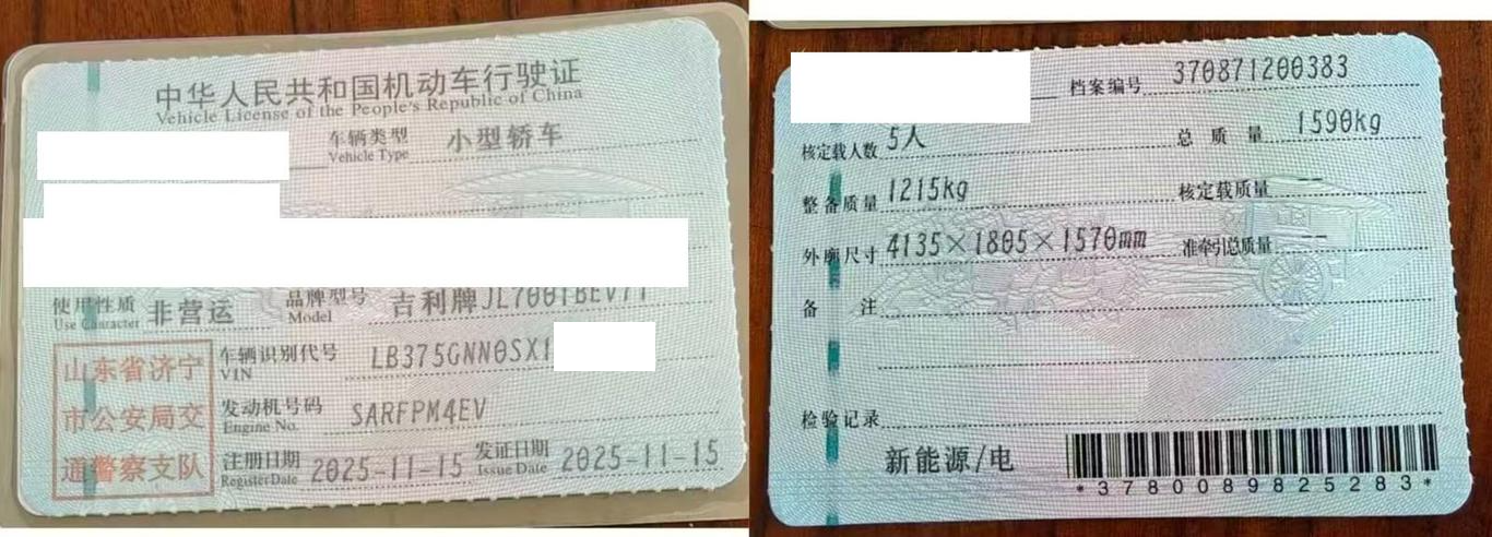 初次登记日期 2025-11-15 车辆名称 吉利银河 星愿