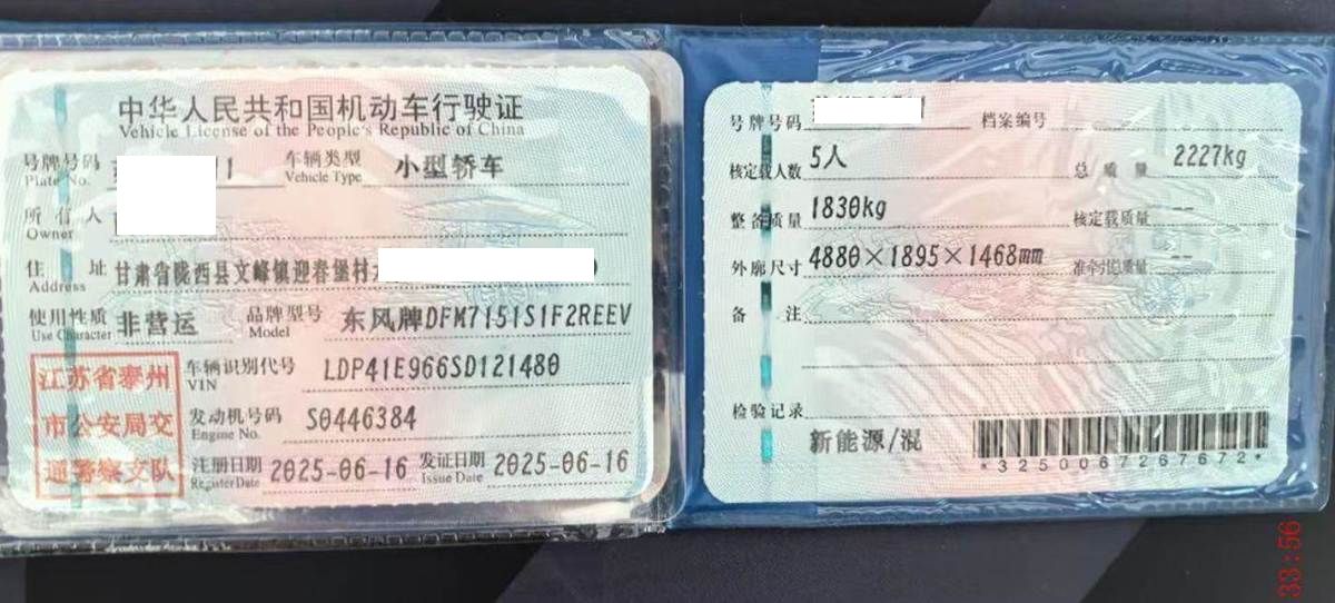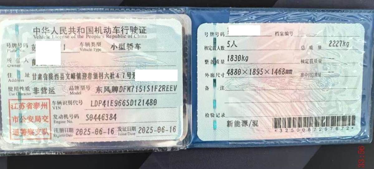 初次登记日期 2025-06-16 车辆名称 东风奕派 eπ007