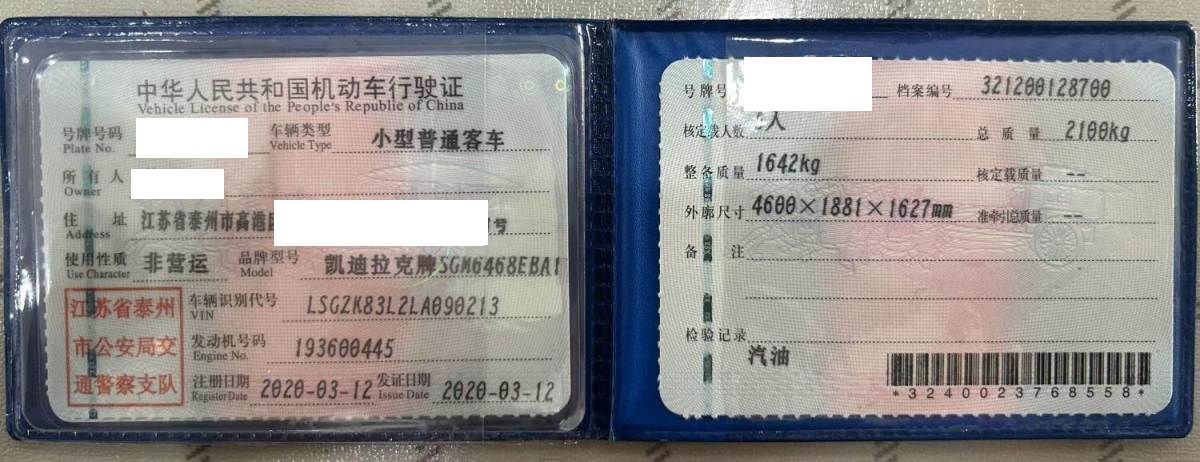初次登记日期 2020-03-12 车辆名称 凯迪拉克