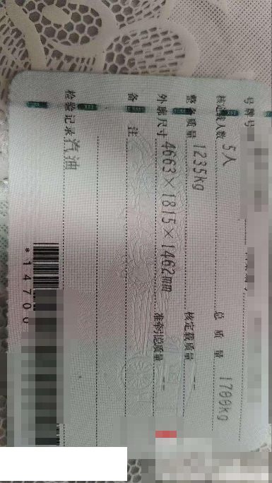 车架号是否受损 未知 使用性质 非营运