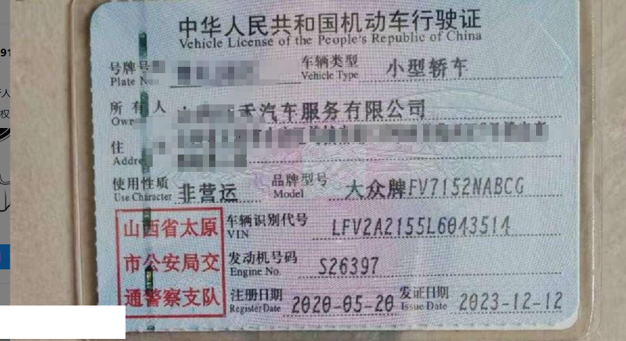 车牌号 晋****** 品牌 大众