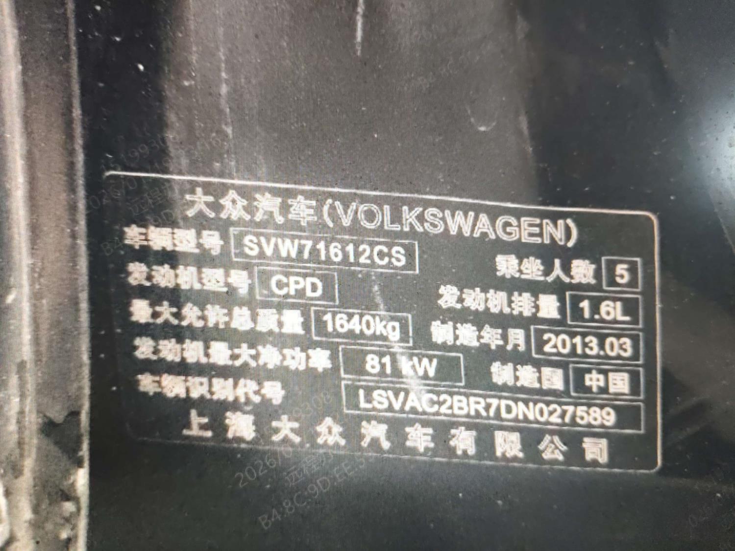 底盘号码 LSVAC2BR7DN027589 变速箱类型 自动