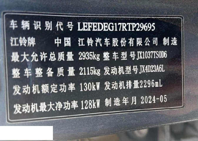 车牌号 新****** 品牌 江铃