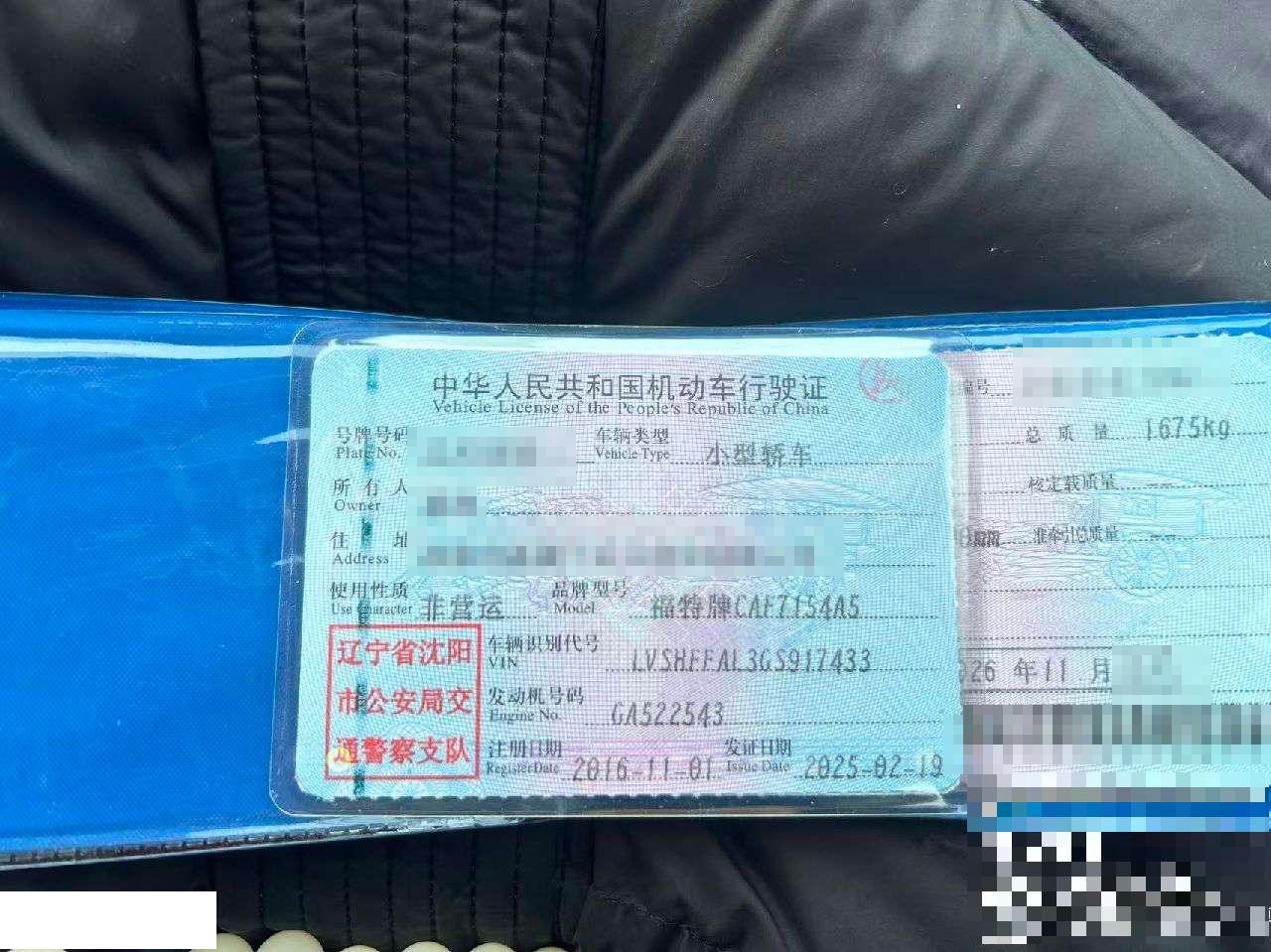 车牌号 辽****** 品牌 福特