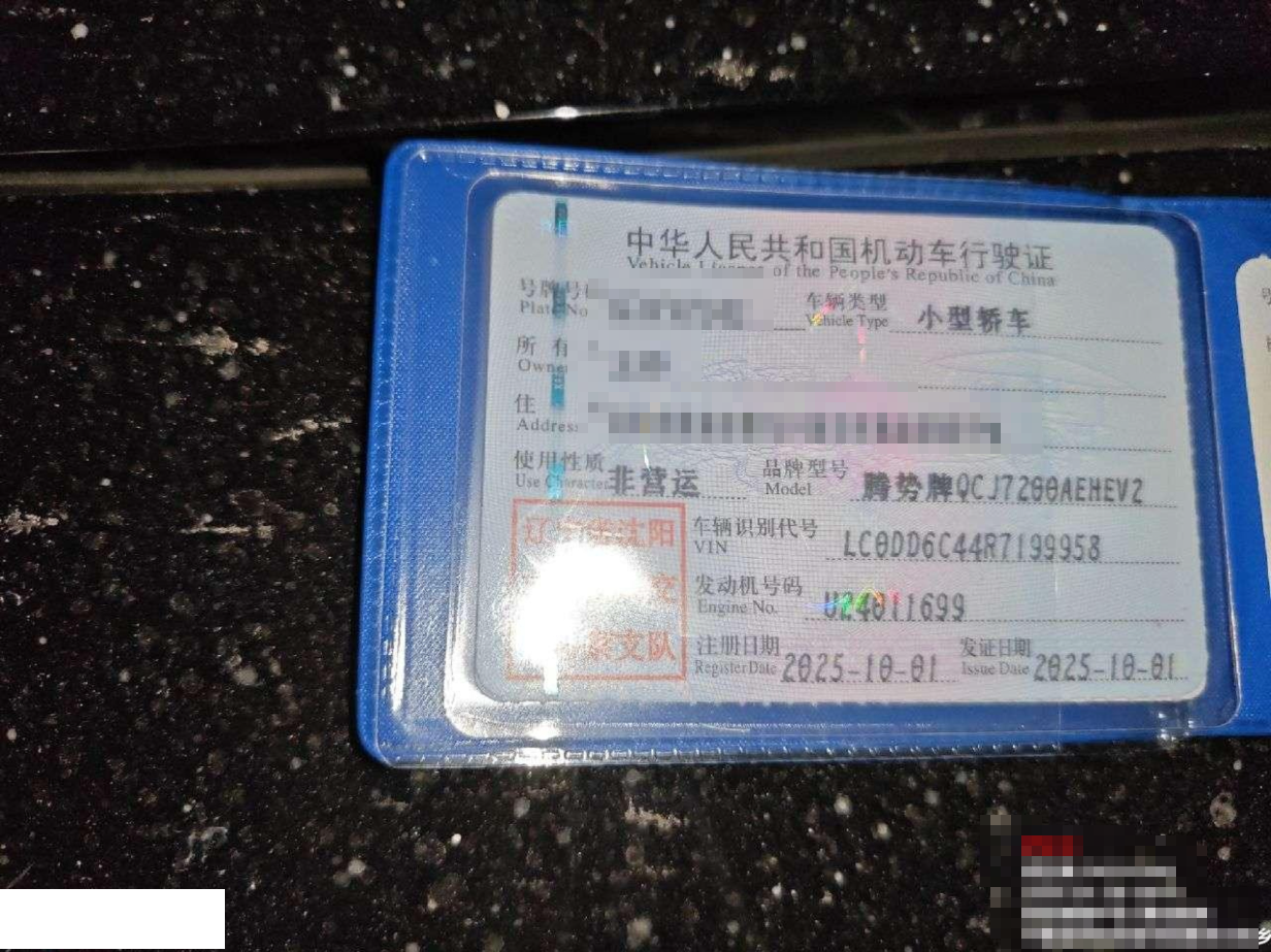 初次登记日期 2025-10-01 车辆名称 腾势牌