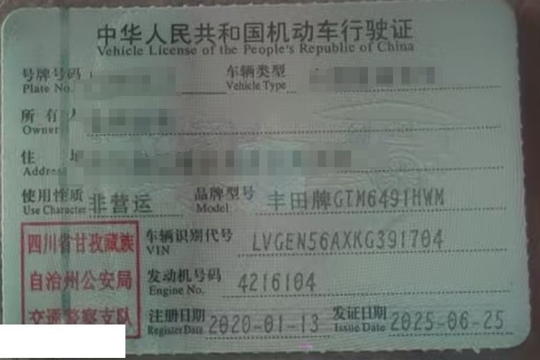 车辆归属地 四川省甘孜藏族自治州 车辆停放仓库 成都