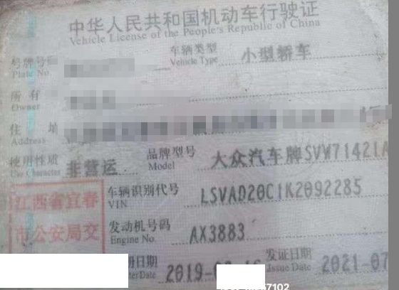 车牌号 赣****** 品牌 大众