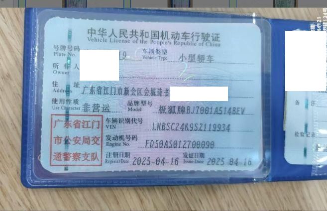 车辆归属地 广东省江门市 车辆停放仓库 广东省中山市中山市
