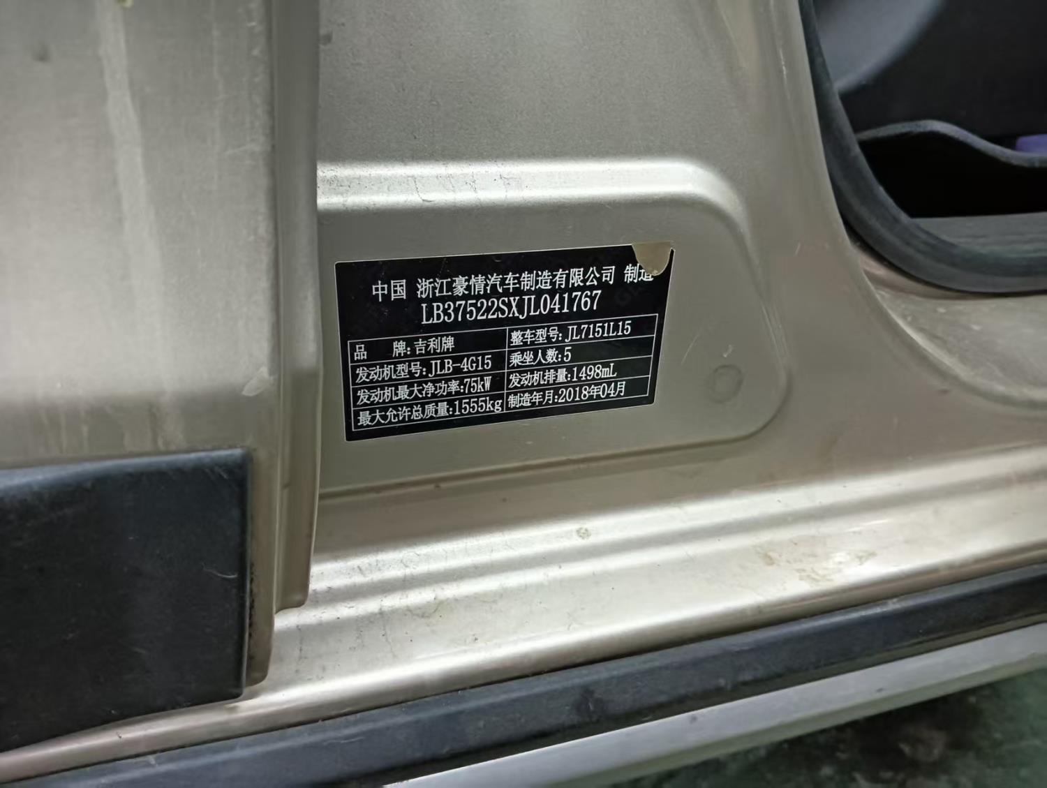 初次登记日期 2018-04-27 车辆名称 吉利汽车 远景X3