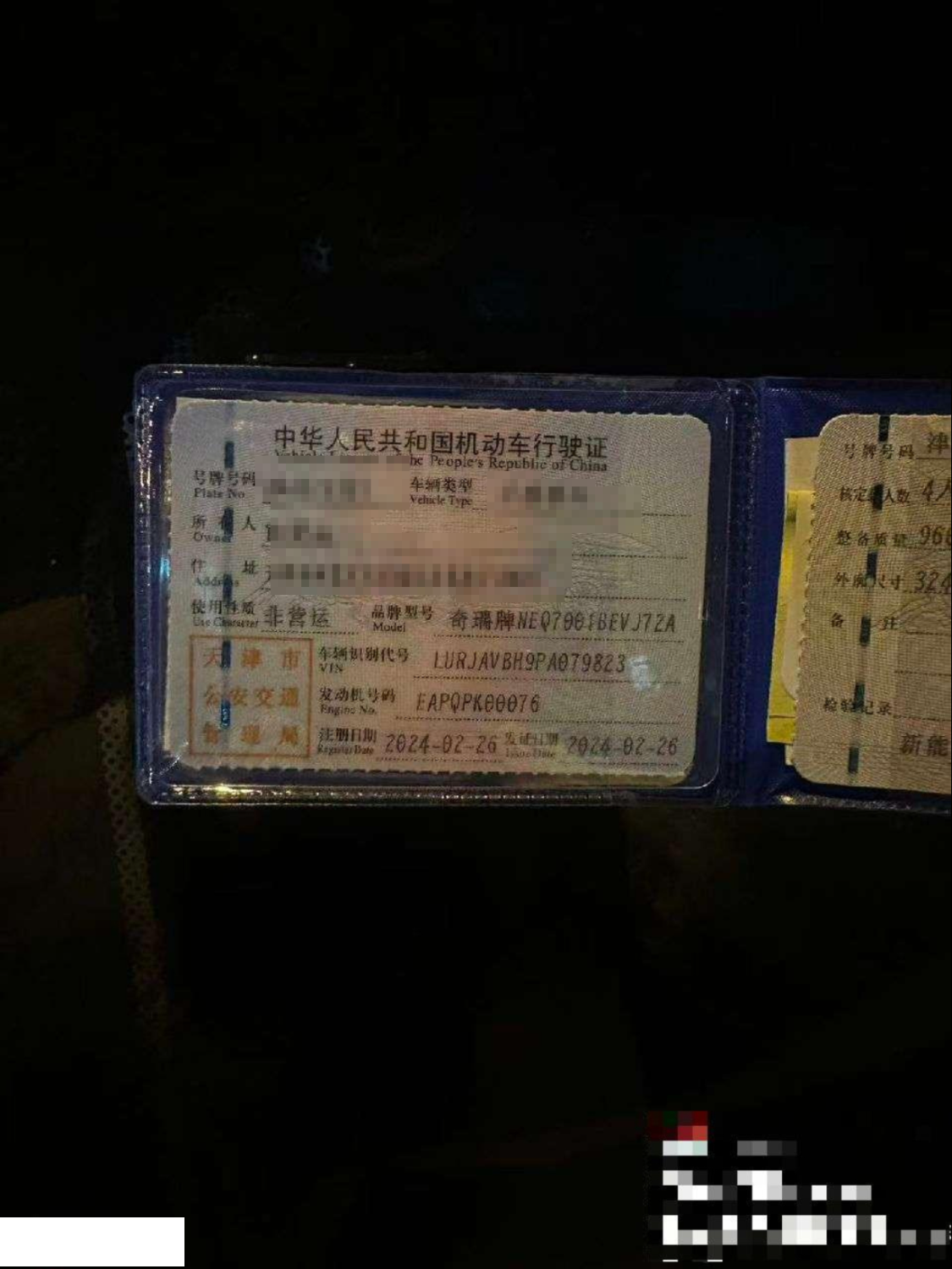 车牌号 津****** 品牌 奇瑞