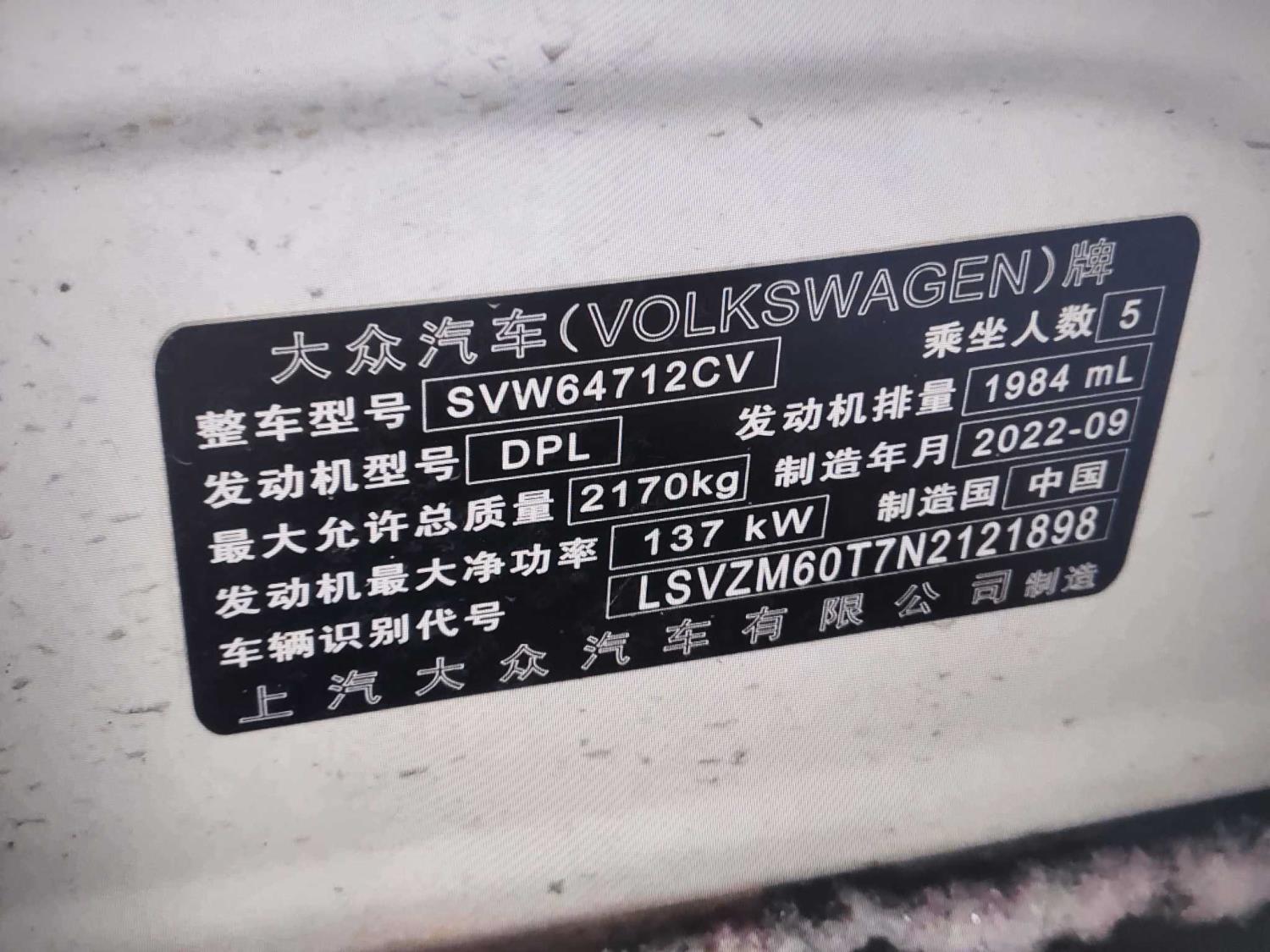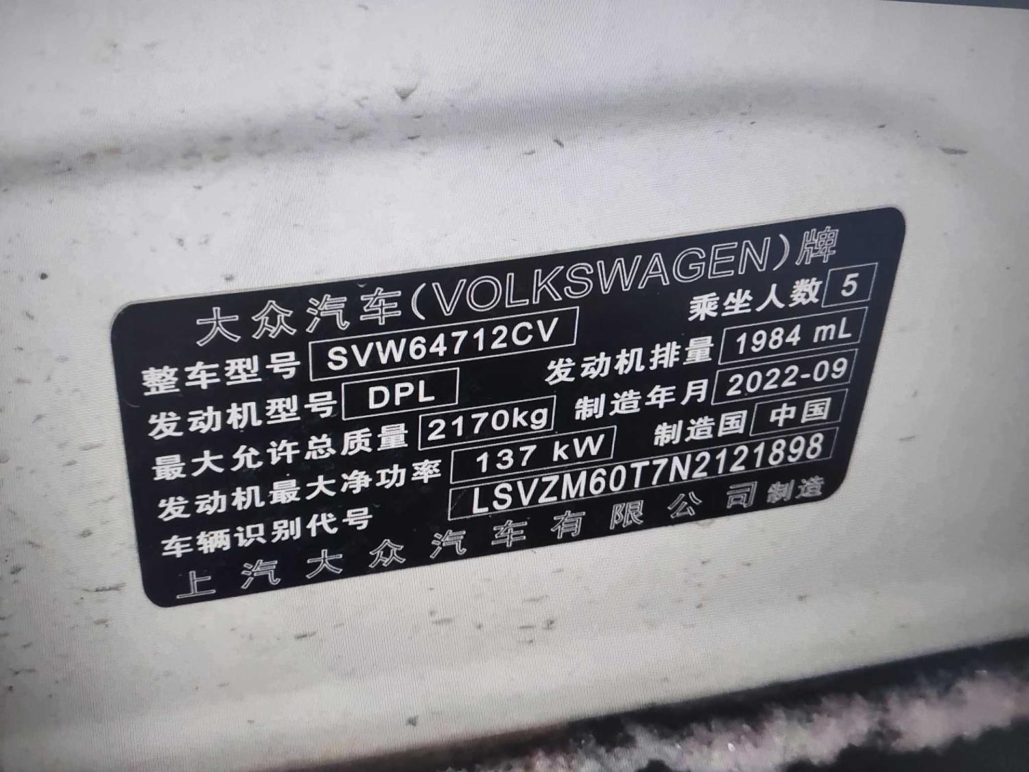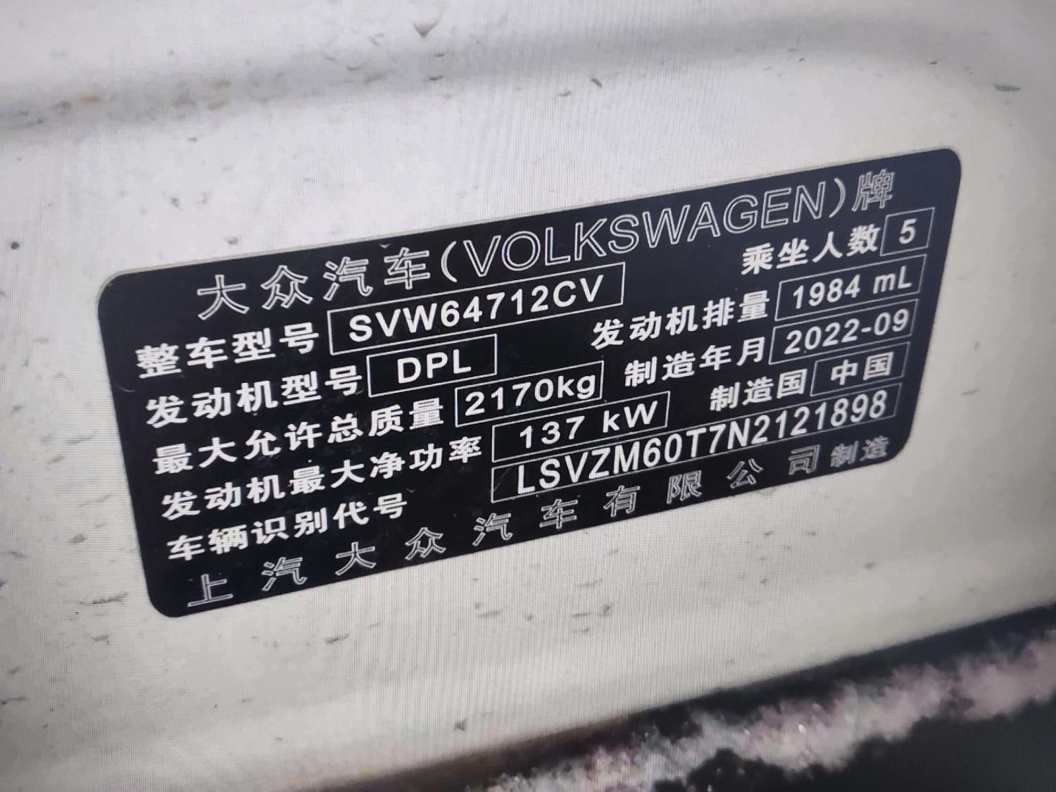 底盘号码 LSVZM60T7N2121898 变速箱类型 自动