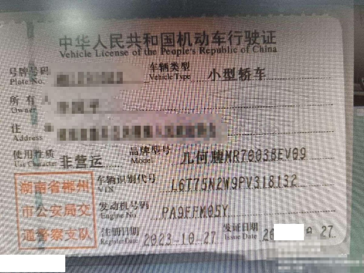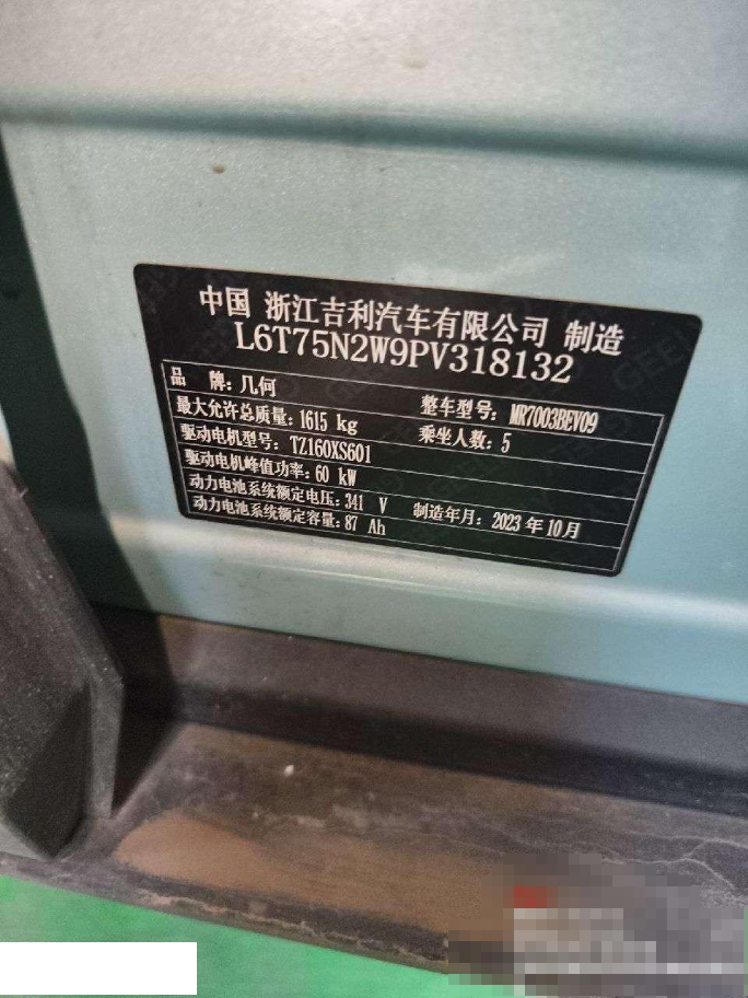 初次登记日期 2023-10-27 车辆名称 吉利几何