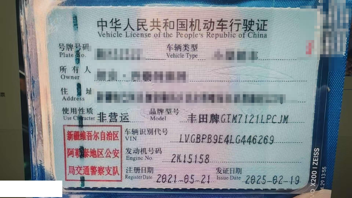 车辆归属地 新疆维吾尔自治区阿勒泰 车辆停放仓库 新疆维吾尔自治区阿勒泰