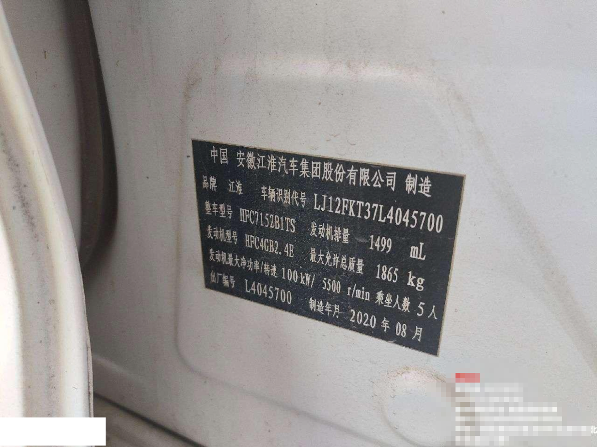 初次登记日期 2020-10-22 车辆名称 江汽集团 嘉悦A5