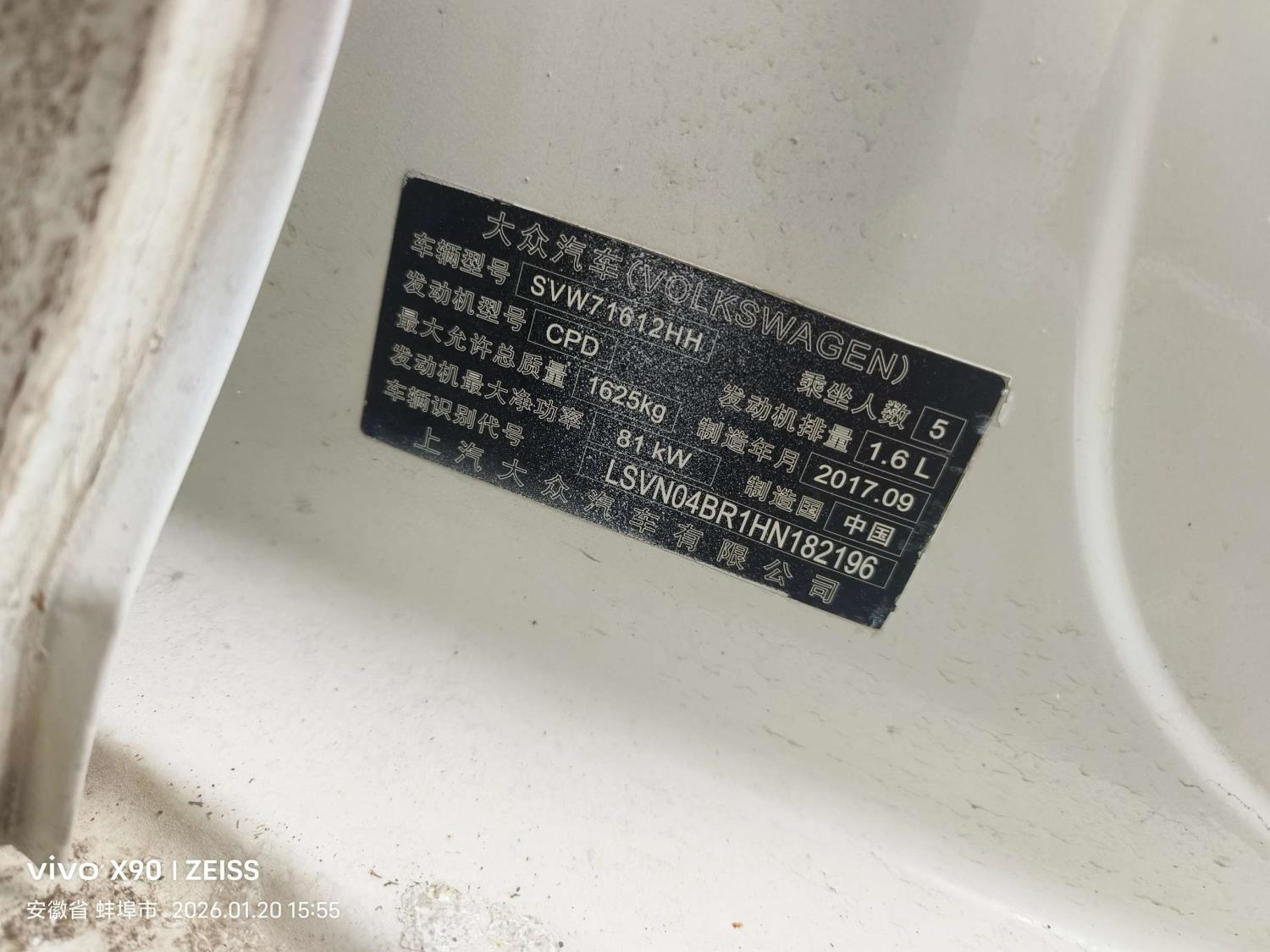 车牌号 皖****** 品牌 大众