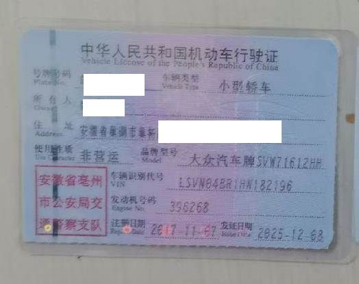 车辆归属地 安徽省亳州市 车辆停放仓库 安徽省蚌埠市