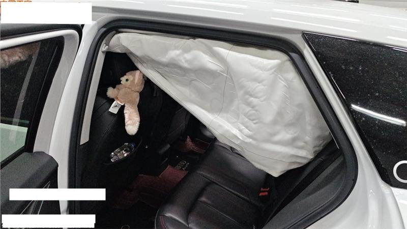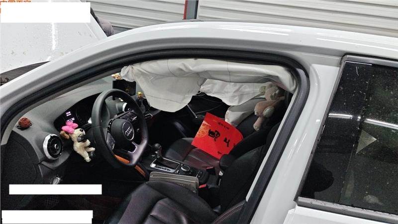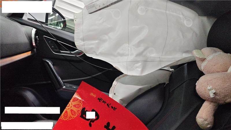 上报,损失详见照片,不能排除二次事故的可能性,两侧气帘及右侧座椅气囊弹出