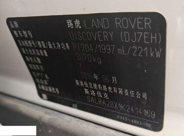 初次登记日期 2019-11-18 车辆名称 路虎 发现