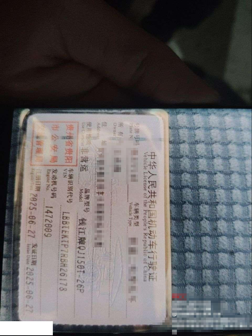 初次登记日期 2025-06-27 车辆名称 钱江牌