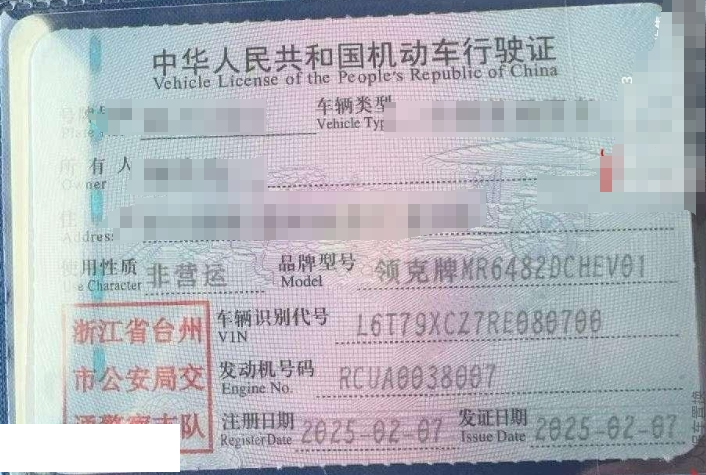 初次登记日期 2025-02-07 车辆名称 领克牌