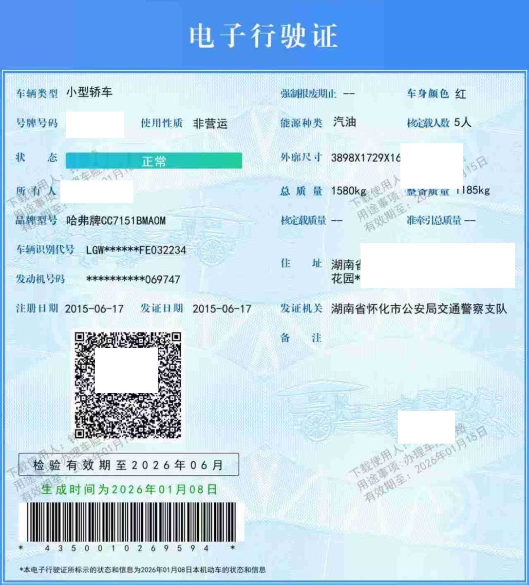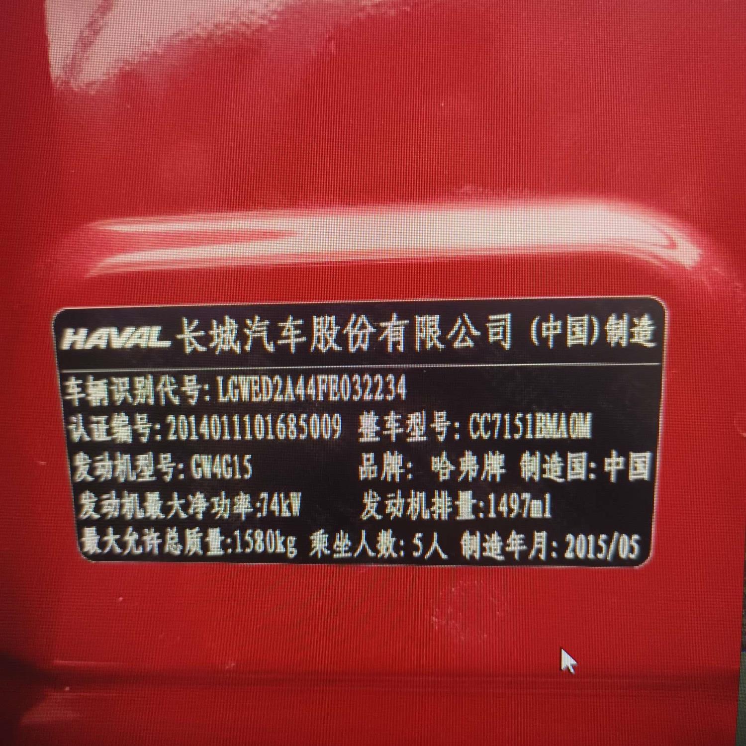 初次登记日期 2015-06-17 车辆名称 哈弗牌