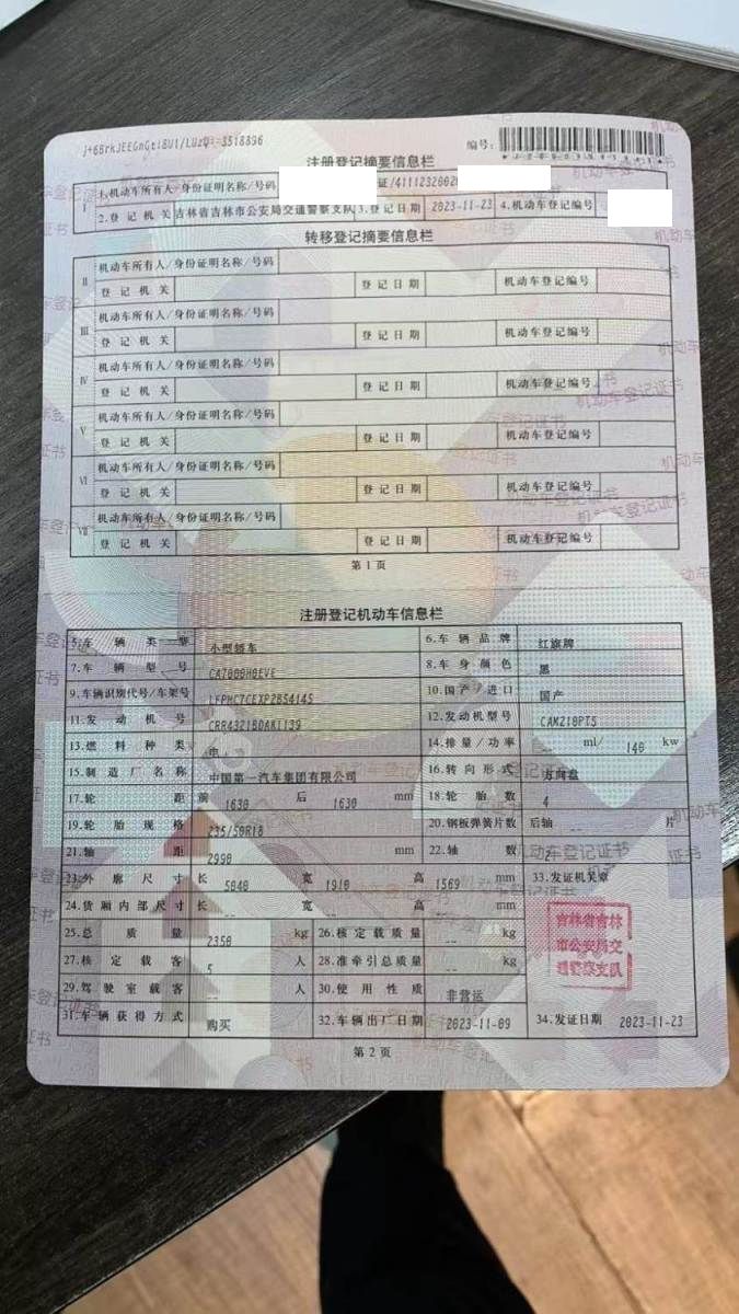 初次登记日期 2023-11-23 车辆名称 红旗牌