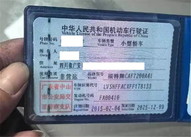 车辆归属地 广东省中山市 车辆停放仓库 广东省中山市中山市