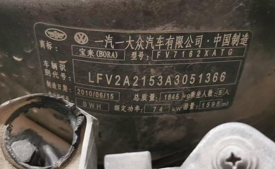 初次登记日期 2010-06-29 车辆名称 大众 宝来