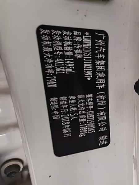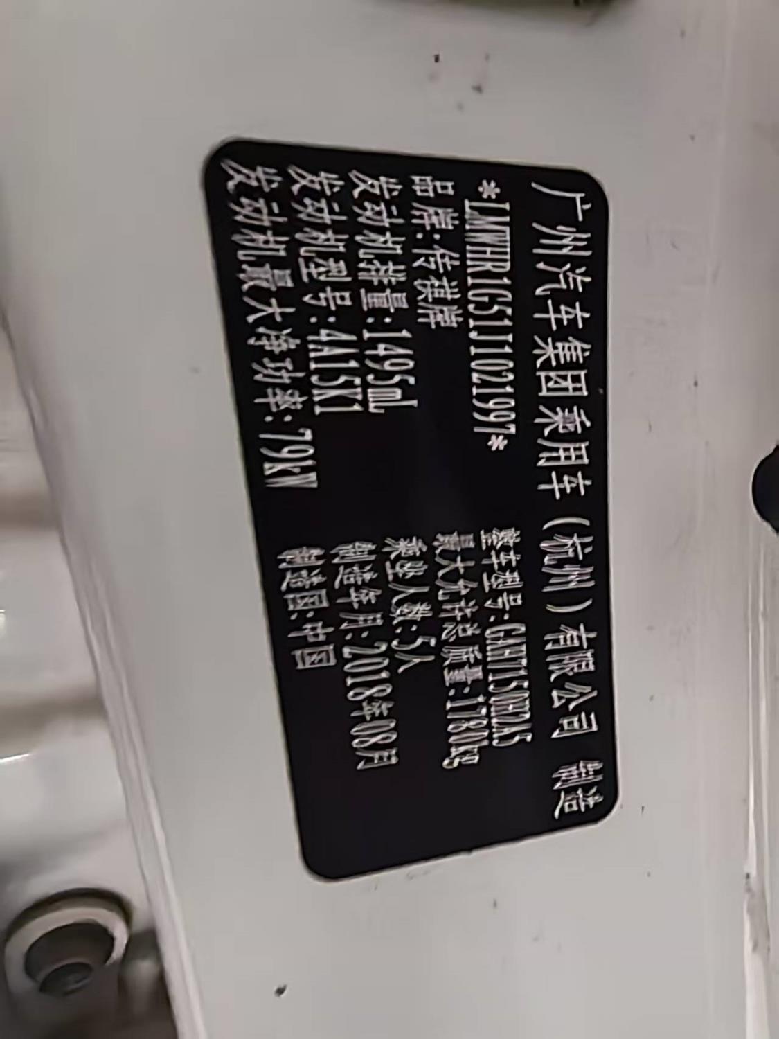 初次登记日期 2018-12-18 车辆名称 广汽传祺