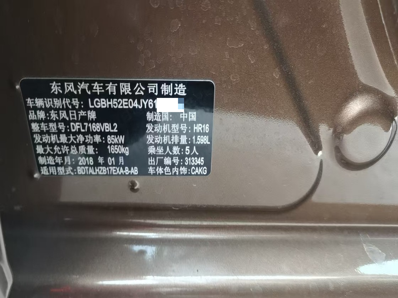 初次登记日期 2018-03-28 车辆名称 日产 轩逸