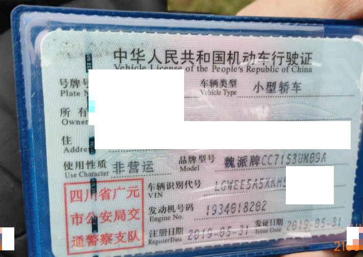 初次登记日期 2019-05-31 车辆名称 魏牌 VV5