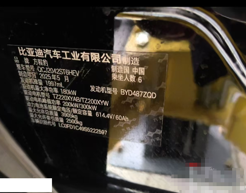 初次登记日期 2025-06-06 车辆名称 方程豹 豹