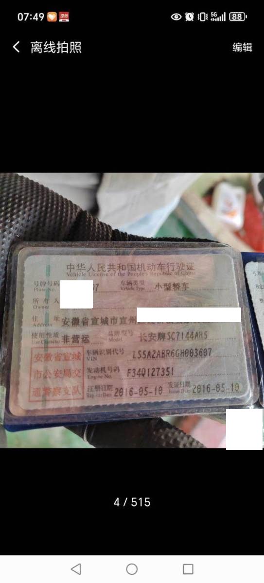 车牌号 皖****** 品牌 长安