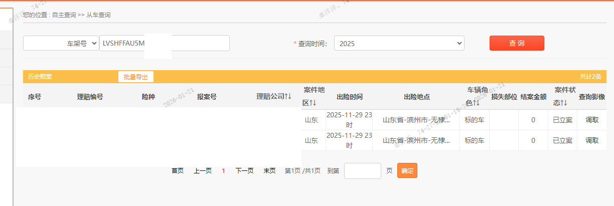 车架号是否受损 未知 使用性质 非营运