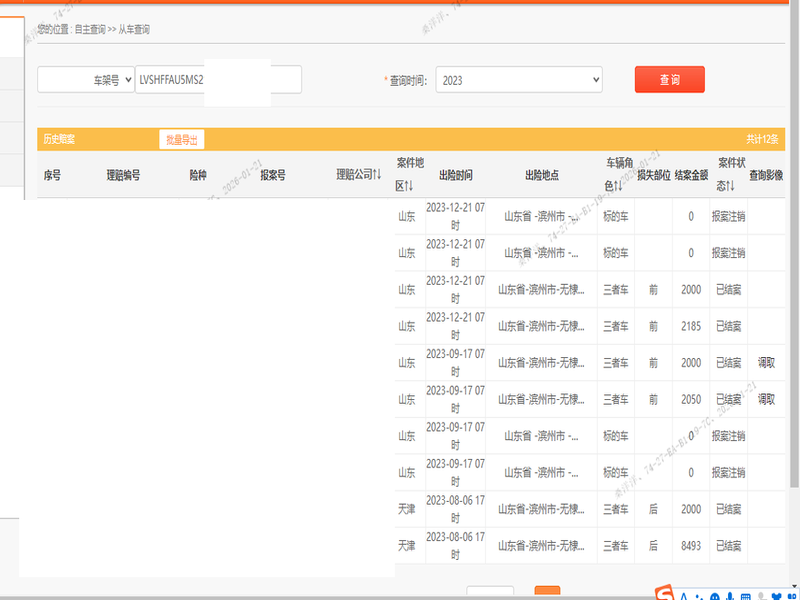 车辆归属地 山东省滨州 车辆停放仓库 山东省滨州