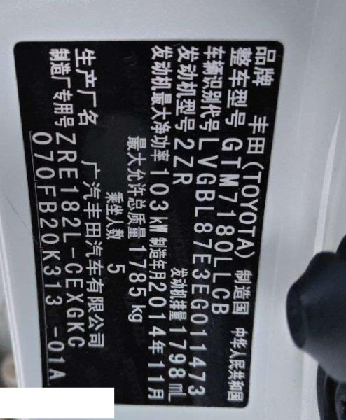 车牌号 新****** 品牌 丰田