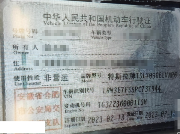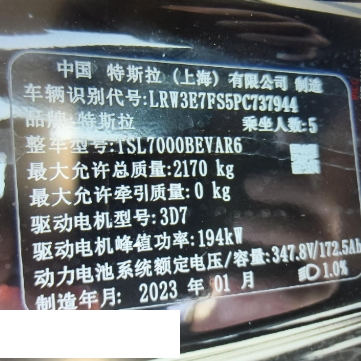 初次登记日期 2023-02-13 车辆名称 特斯拉 Model