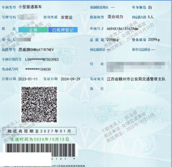 车架号是否受损 未知 使用性质 非营运