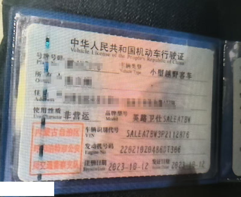 车辆归属地 内蒙古族自治区呼和浩特 车辆停放仓库 内蒙古族自治区呼和浩特